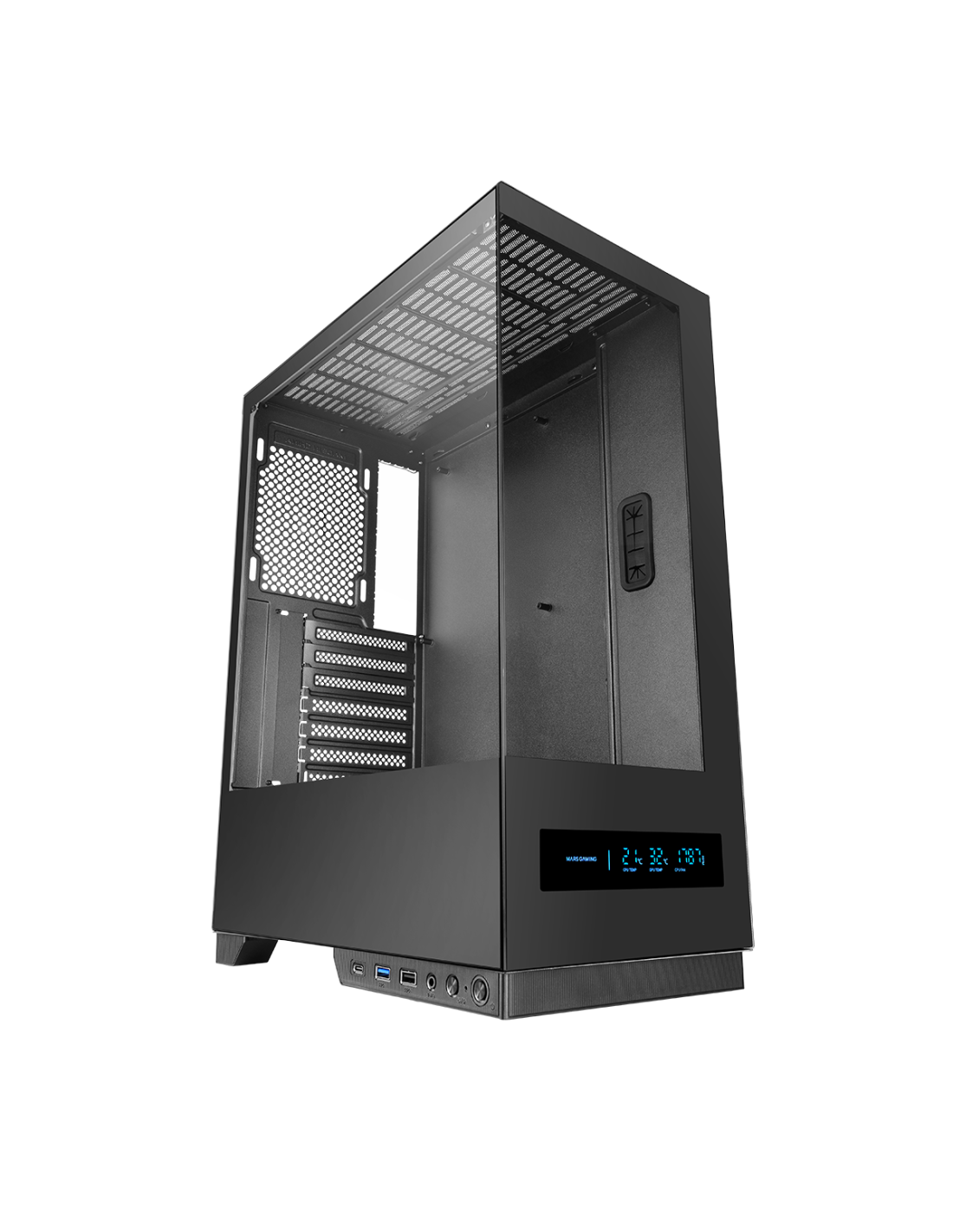 - Doble cristal templado: frontal + lateral para vista 360° del hardware