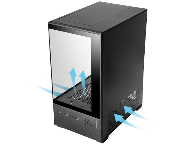 Descubre el equilibrio perfecto entre diseño y funcionalidad con la caja microATX MC-SE2. Equipada con paneles de cristal templado continuo sin marco en el frontal y lateral, esta caja de ordenador transforma tu setup en una vitrina de hardware con estilo. Su ventilador trasero FRGB de 120mm, estructura de doble cámara con soporte para kits de refrigeración líquida y sistema de ventilación optimizado AirFlow mesh ofrecen un rendimiento térmico excepcional para tus sesiones gaming.