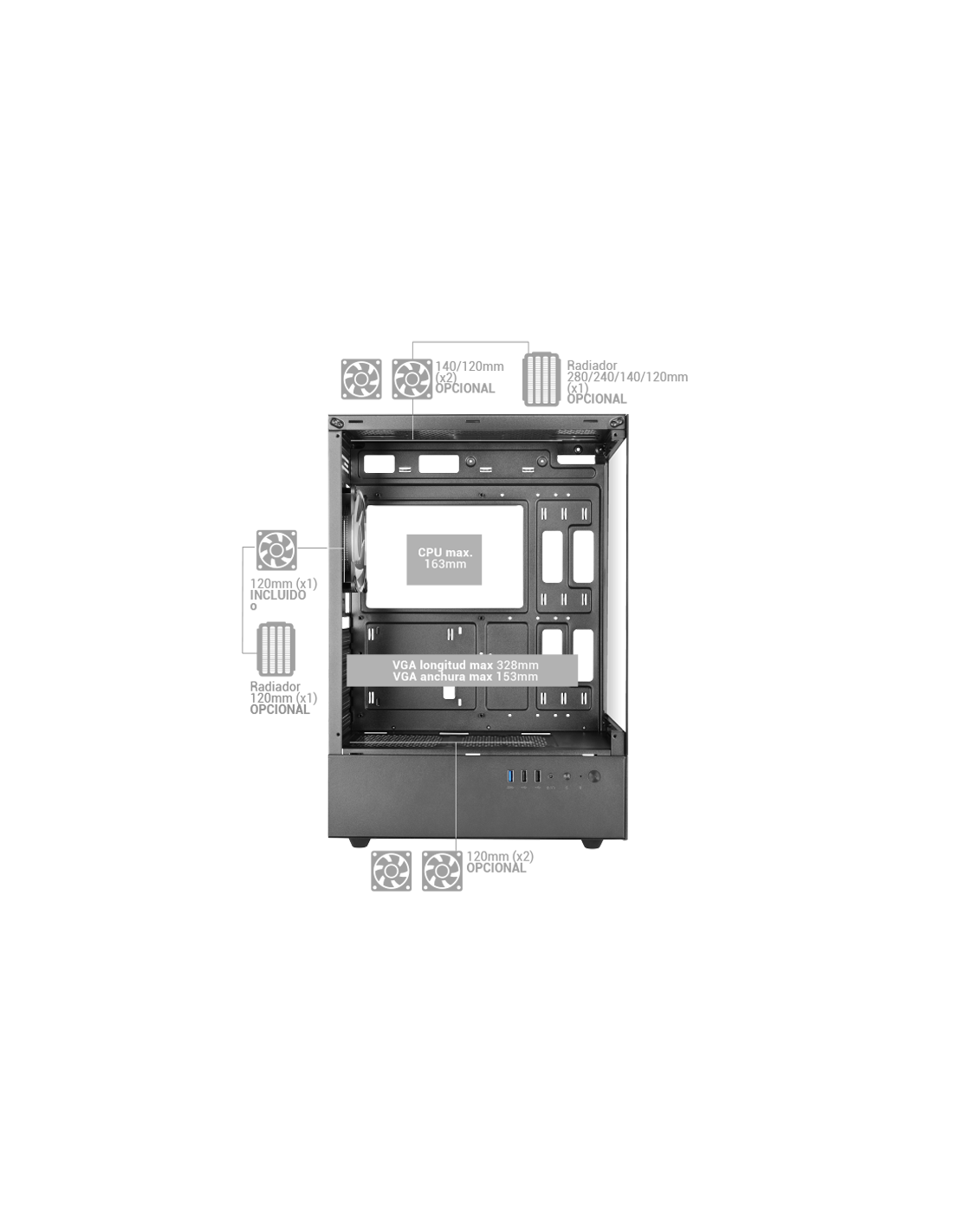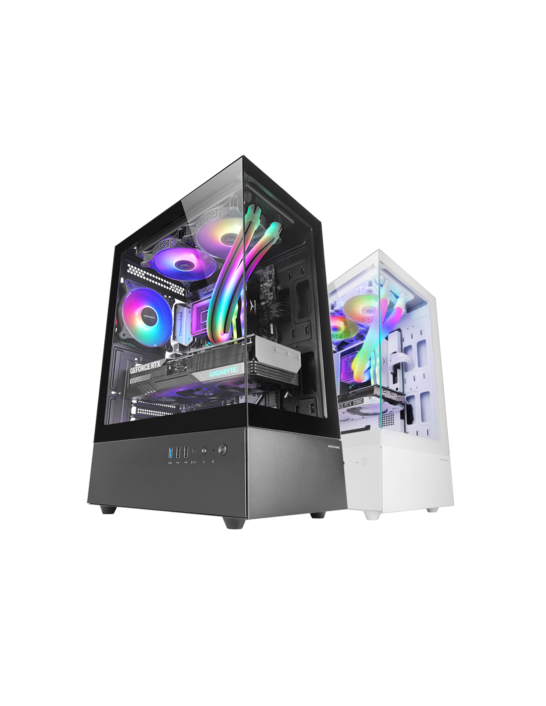 La MC-XO es una semitorre ATX diseñada para quienes buscan el equilibrio perfecto entre rendimiento y estética. Con un diseño optimizado para la refrigeración, incorpora un ventilador FRGB trasero de 120mm, un sistema de doble cámara para una gestión térmica eficiente y el innovador sistema SIDECOOL, que maximiza el flujo de aire lateral sin comprometer la estética limpia y sofisticada de la caja. Su diseño moderno y funcional la convierte en una opción ideal para setups gaming y profesionales.