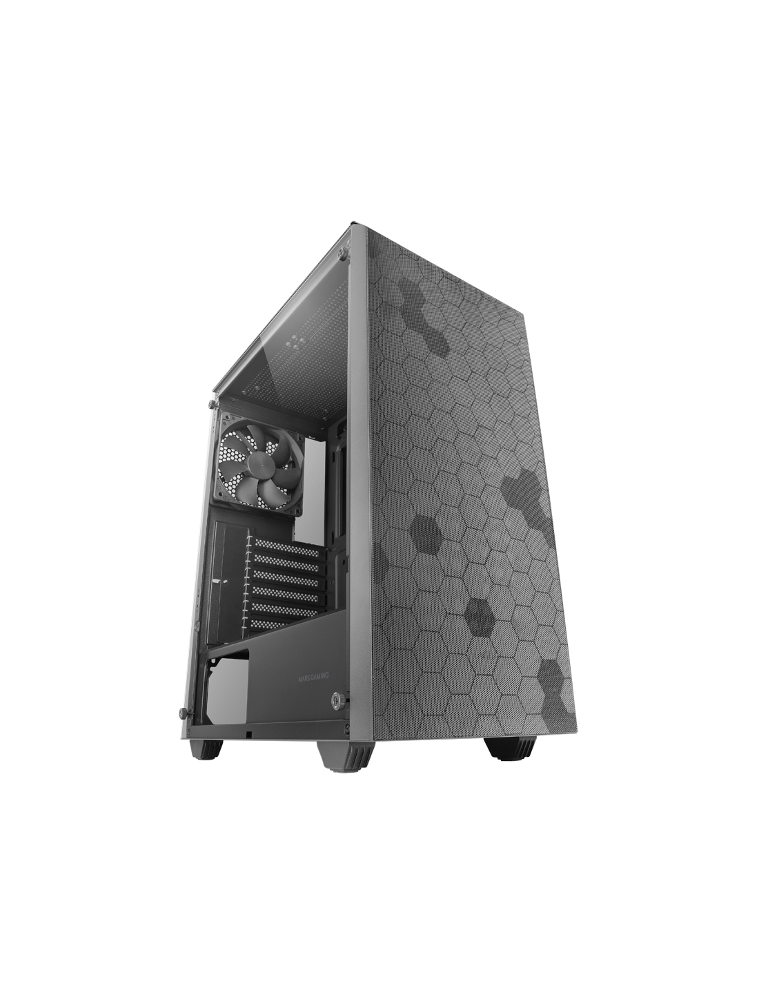 La caja MC-Q3 combina diseño y funcionalidad. Su cristal templado lateral ofrece una elegante exhibición de los componentes y su estructura con doble rejilla magnética de diseño geométrico asegura una refrigeración y mantenimiento óptimos. Con un ventilador FDB de 120mm incluido y capaz de albergar sistemas de refrigeración líquida de hasta 360mm, garantiza un flujo de aire eficiente. Espaciosa y compatible con placas base ATX, es ideal para configuraciones avanzadas.