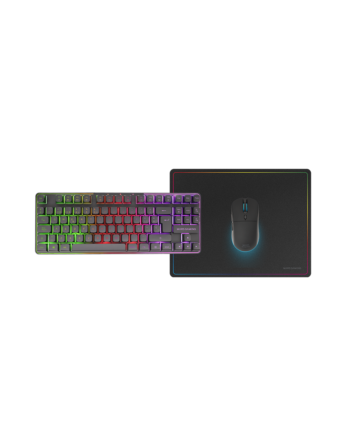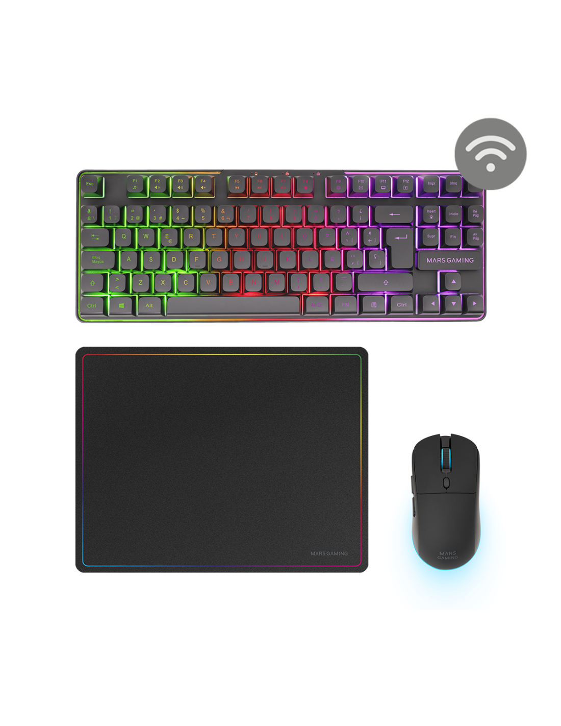 El equilibrio perfecto entre rendimiento, diseño y libertad inalámbrica con el combo gaming MCPWTKL, un pack que incluye teclado compacto TKL inalámbrico, ratón inalámbrico de alta precisión y alfombrilla con superficie optimizada. Equipado con tecnología DualPro Link 2.4GPRO, cada periférico cuenta con su propio receptor inalámbrico para ofrecer una conexión ultraestable y sin interferencias. Perfecto para espacios reducidos y gamers que buscan una experiencia sin cables, sin renunciar a la velocidad ni a la precisión.