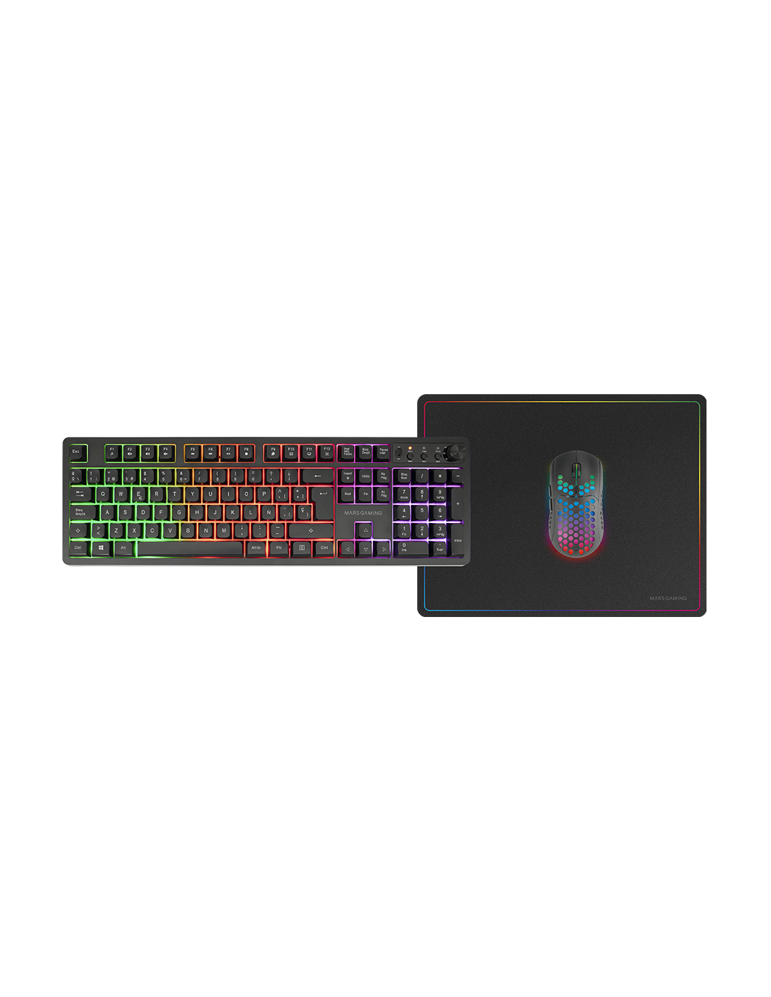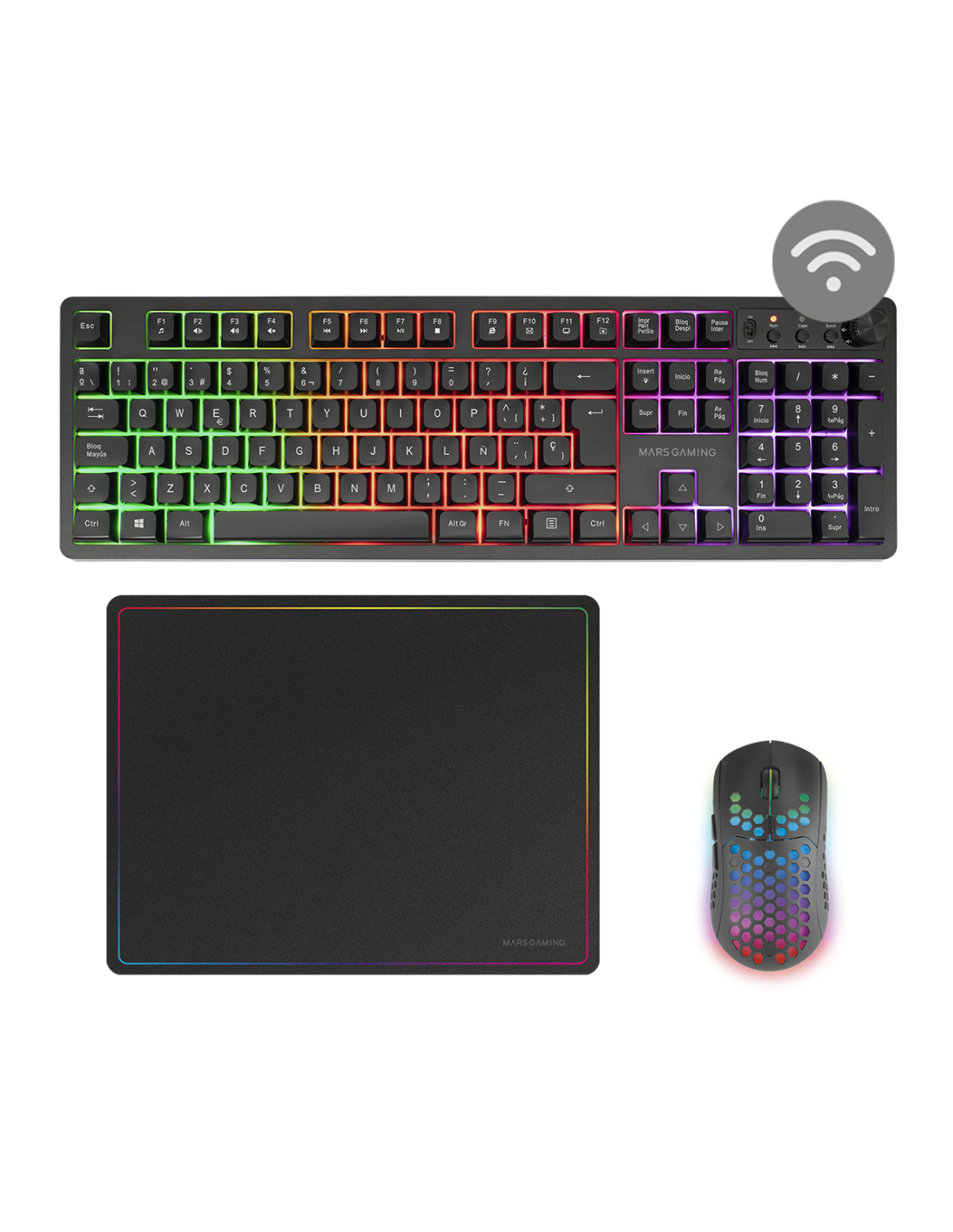 Descubre la libertad inalámbrica definitiva con el MCPWX, el combo gaming 3 en 1 que combina un teclado completo FRGB con tecnología H-Mech, un ratón ultraligero y una alfombrilla de alta precisión. Gracias a la tecnología DualPro Link 2.4GPRO, cada periférico funciona con su propio canal USB dedicado, asegurando una conexión inalámbrica estable, sin interferencias ni latencia.