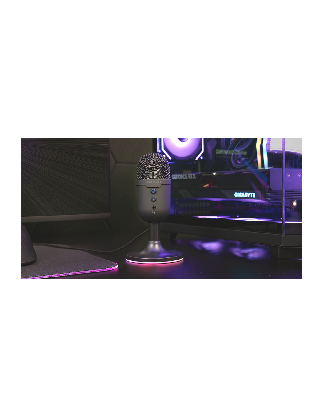 El micrófono compacto MMIC-CX combina tecnología de vanguardia, un diseño elegante y un rendimiento de nivel profesional para ofrecer una experiencia de audio inigualable. Con sonido de alta definición, tecnología de cancelación de ruido ENC y un condensador cardioide profesional, garantiza grabaciones claras y enfocadas, ideales para streaming, gaming o podcasting. Su tamaño compacto, base inclinable ajustable, iluminación ARGB Flow y conectividad USB Plug & Play lo convierten en el complemento perfecto para cualquier setup. Además, su compatibilidad multiplataforma y monitoreo en tiempo real a través de un puerto jack de 3.5mm te ofrecen una versatilidad inigualable, permitiéndote controlar tu sonido con estilo y facilidad.