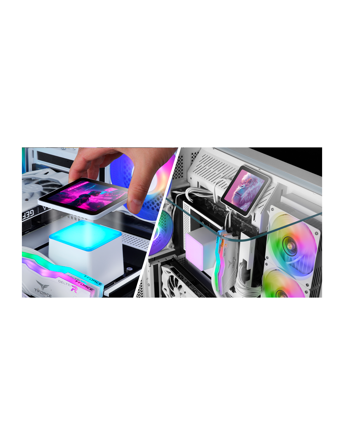Lleva tu ordenador al siguiente nivel con el nuevo referente en refrigeración líquida AIO. ML-VISIONPRO360 fusiona un rendimiento térmico de élite con un diseño espectacular gracias a sus 3x ventiladores ARGB Infinity Mirror y su pantalla IPS de 4” extraíble con base magnética y totalmente personalizable, que puedes colocar dentro o fuera de la torre para lograr el máximo impacto visual. Compatible con Intel y AMD y preparado para CPUs de hasta 600W TDP, este kit está creado para quienes exigen máxima potencia, estilo y control absoluto.