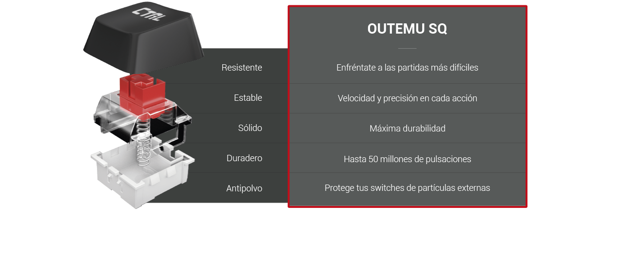 El MKXTKL ofrece todas las prestaciones óptimas para un teclado mecánico gaming RGB, en formato TKL. Nuevos switches mecánicos OUTEMU SQ, estructura de ABS y aluminio, reposamuñecas extraíble... Todo lo que necesitas, ahora en un diseño ultracompacto que te ofrece una total libertad de movimiento a la hora de jugar.