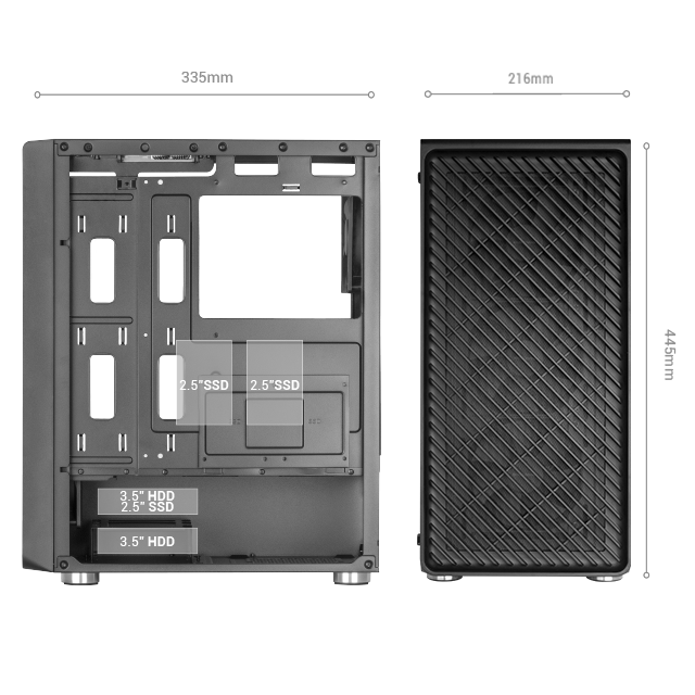 - 2x 3.5" HDD / 3x 2.5" SSD
