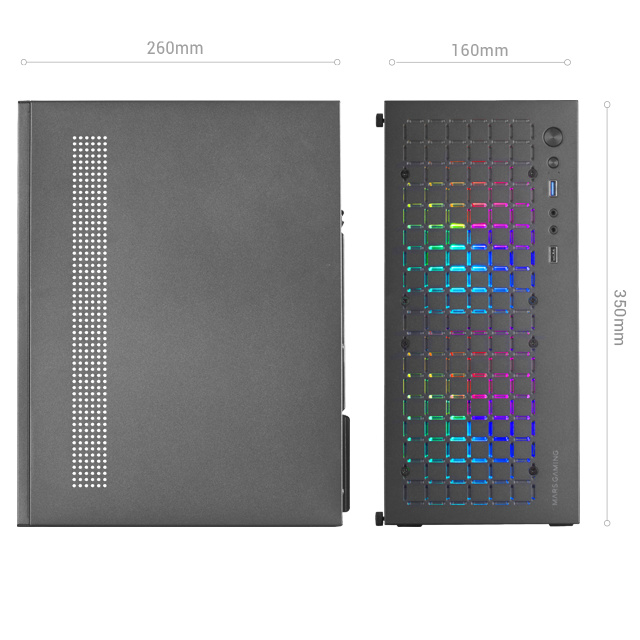Design innovant avec grille métal-MESH qui améliore l'esthétique et les performances et fenêtre latérale totale. Configurations de jeu haute performance en format *MicroATX et Mini-ITX. 2 ventilateurs Fixed RGB en façade.