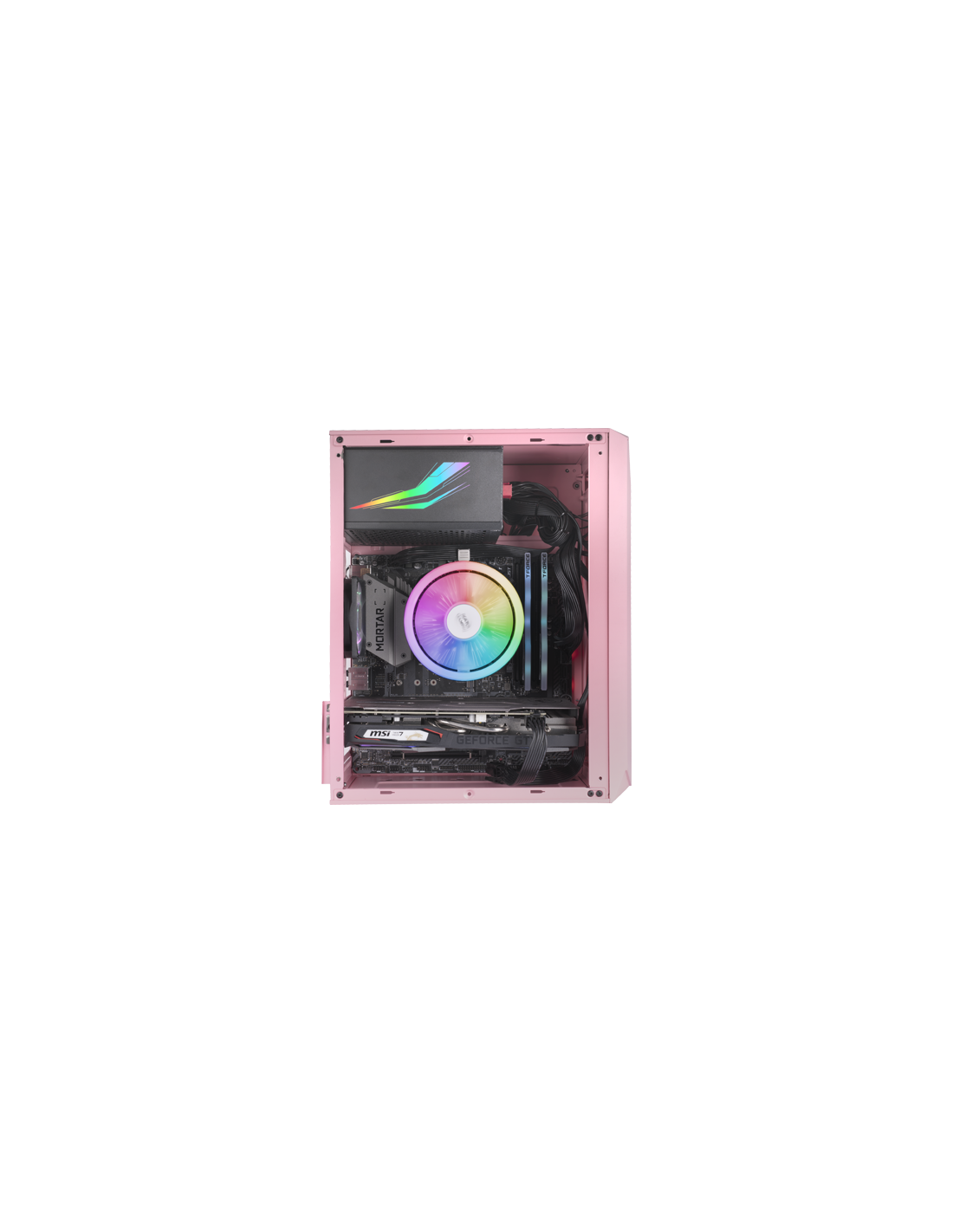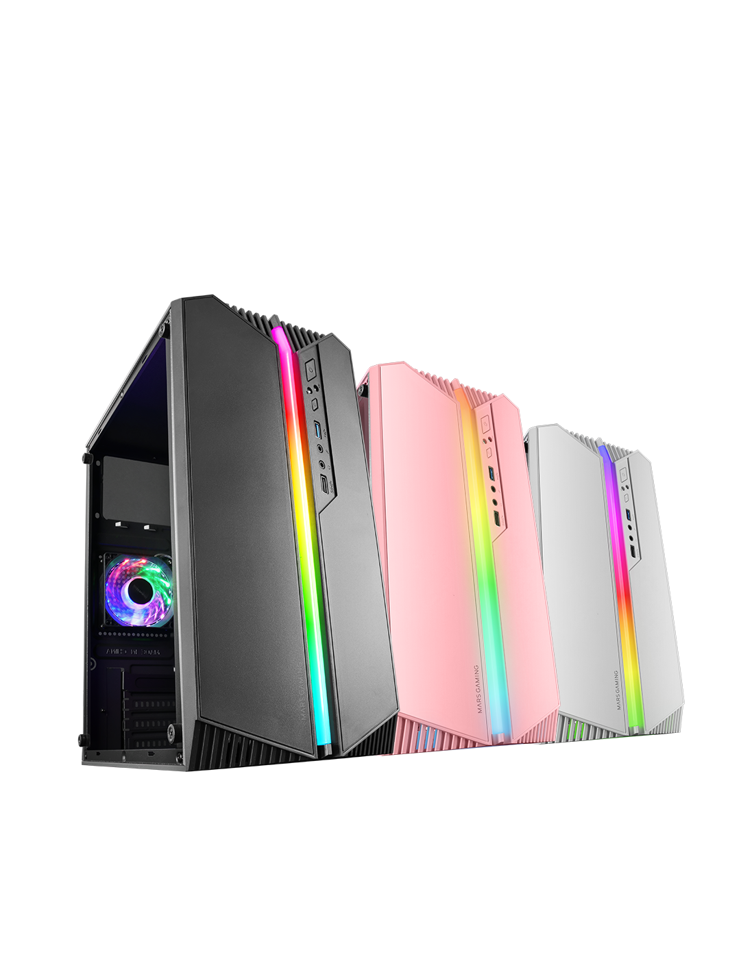 Éclairage frontal ARGB avec 12 modes spectaculaires et un ventilateur arrière FRGB inclus. Taille compacte MICRO-ATX avec espace pour liquides jusqu'à 120mm*