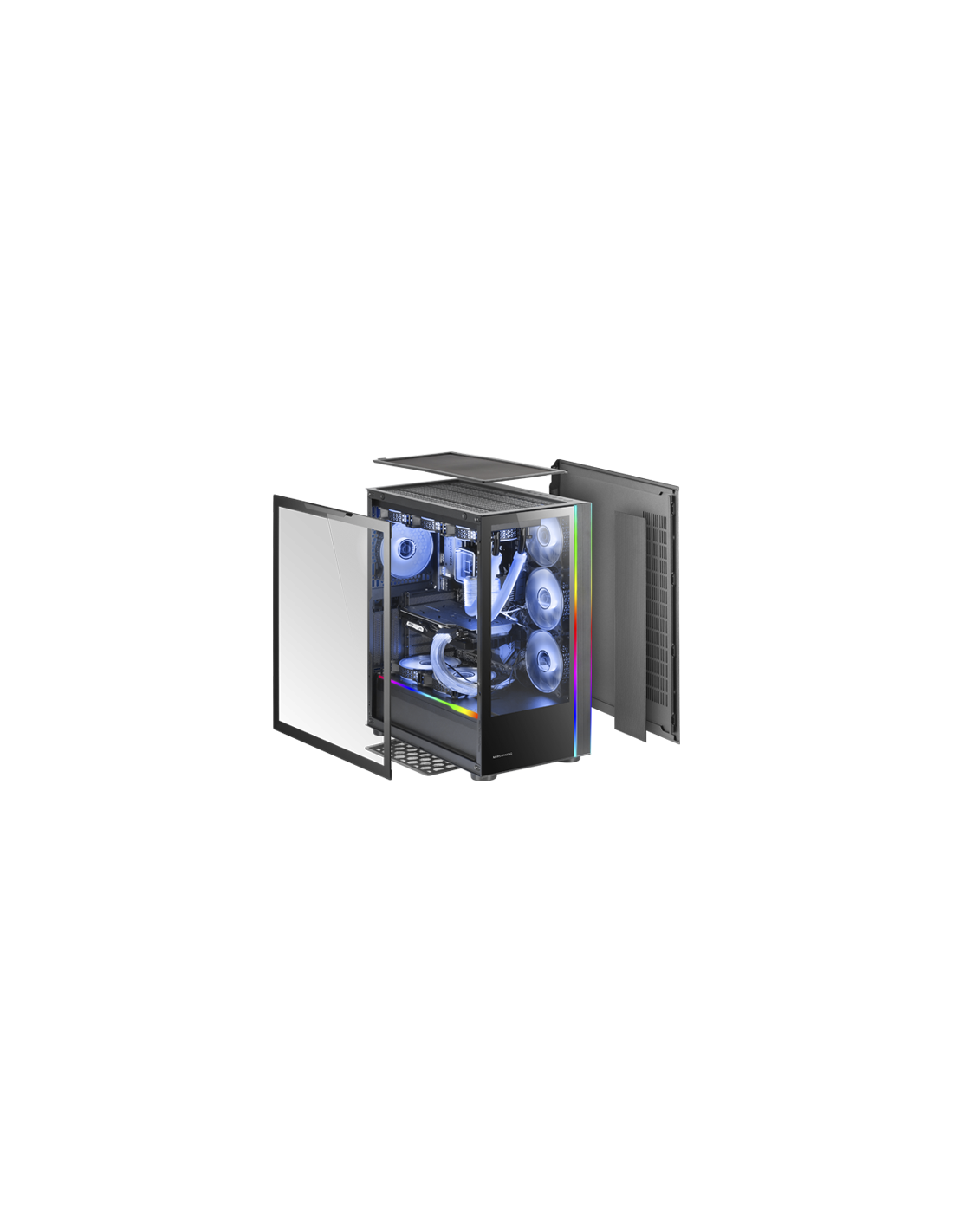 Tour E-ATX XXL avec capacité étendue et support total pour refroidissements liquides. Double bande LED ARGB en frontal et latéral avec double fenêtre totale en verre trempé pour tout montrer.