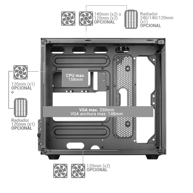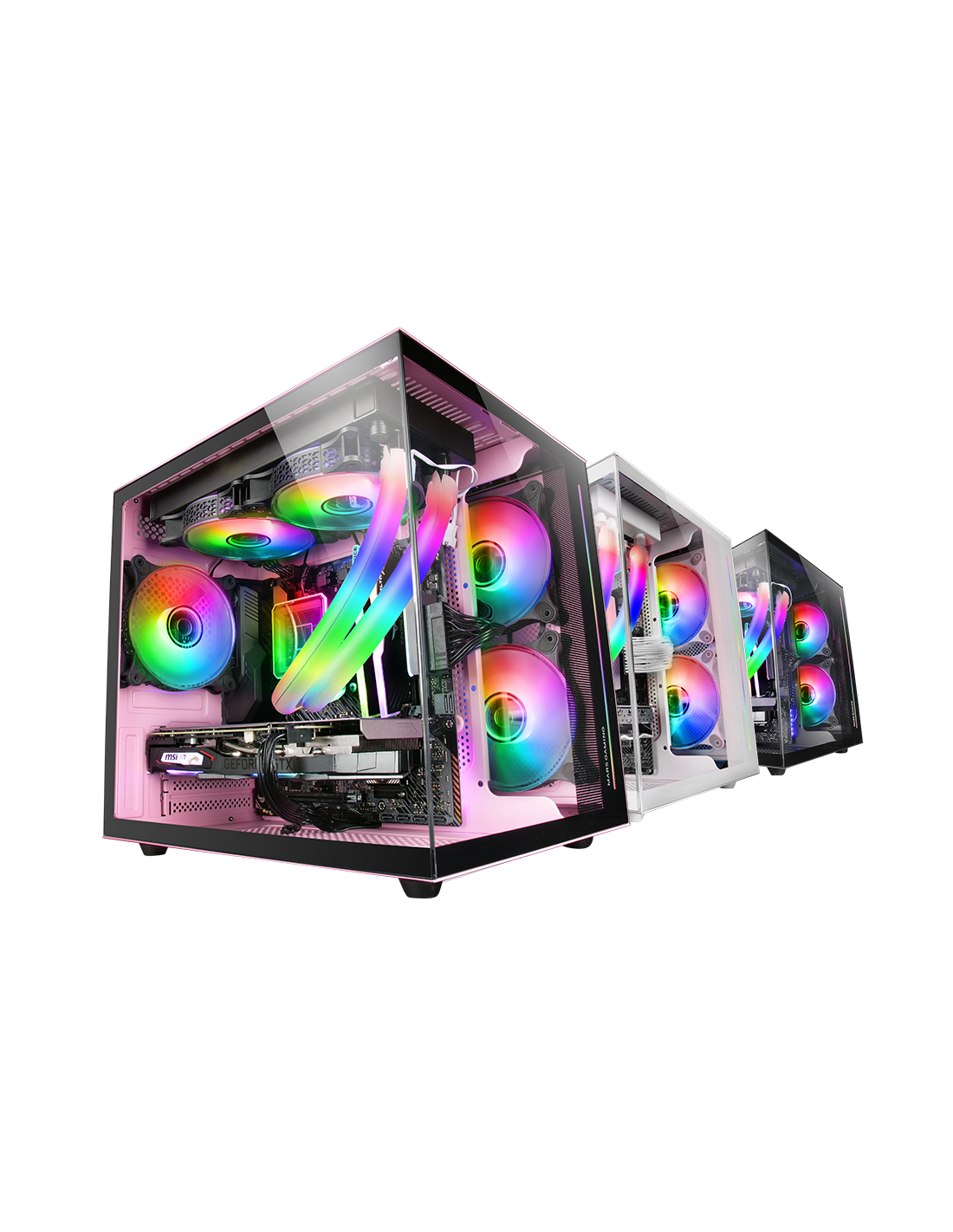 Design exclusif et espace optimisé. Ses fenêtres en verre trempé continu permettent d'exposer vos composants, tandis que sa structure modulaire innovante à double chambre améliore le refroidissement et l'espace. Avec une capacité pour accueillir jusqu'à 7 ventilateurs et des cartes graphiques haut de gamme, il offre des opportunités illimitées de personnalisation, y compris le support pour le refroidissement liquide jusqu'à 240mm. La combinaison parfaite entre personnalisation et performance.
