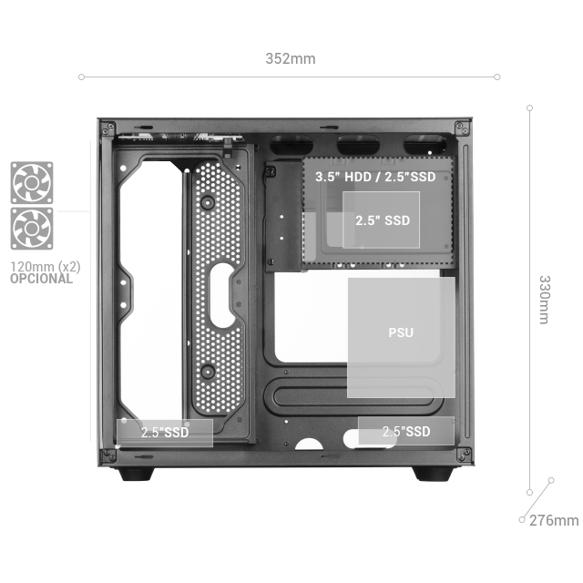 - 2x 3.5" HDD / 3x 2.5" SSD