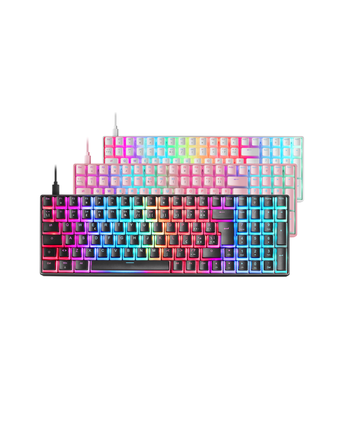 Le clavier premium le plus innovant. Taille compacte exclusive de 96%, touches spectaculaires PBT Pudding, FULL RGB CHROMA, Switches anti-poussière OUTEMU SQ, connecteur USB-C à USB-A amovible, les effets d'éclairage les plus impressionnants et un logiciel de configuration complet. Tout cela avec la plus grande compatibilité multiplateforme.