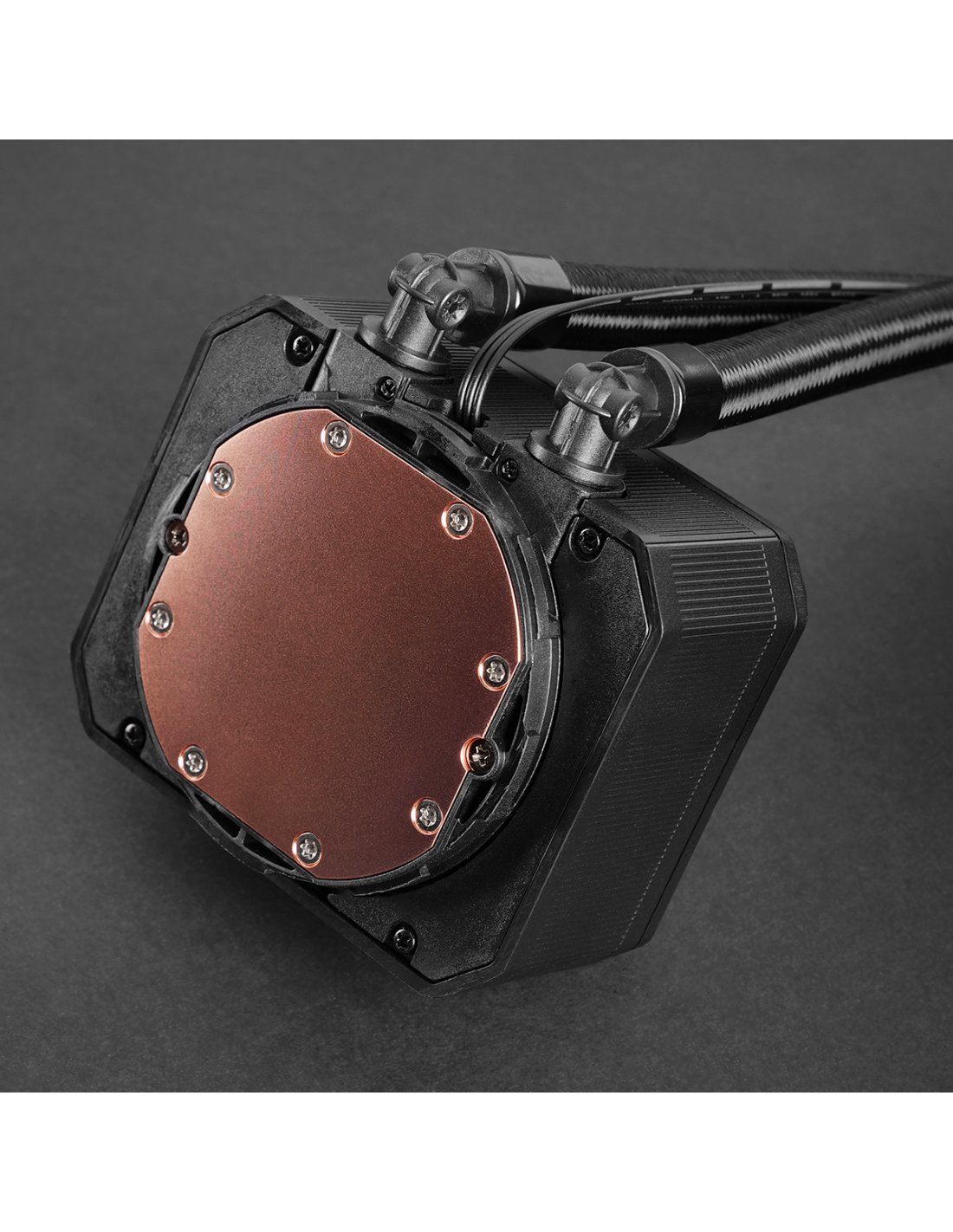 La ML-TWO360 est une solution de refroidissement liquide AIO qui combine un design ARGB premium, une performance thermique de dernière génération et un fonctionnement ultra-silencieux. Avec une pompe de quatrième génération à base de cuivre et des micro-canaux, trois ventilateurs ARGB à noyau de cuivre, des roulements FDB de dernière génération et un effet Infinity Mirror à la fois sur le noyau et sur les ventilateurs, ce système de refroidissement ne se contente pas de maximiser la dissipation de la chaleur, mais transforme également l'esthétique de votre configuration. Compatible avec les cartes mères ARGB et les processeurs jusqu'à 600W TDP, il pousse votre configuration à son maximum