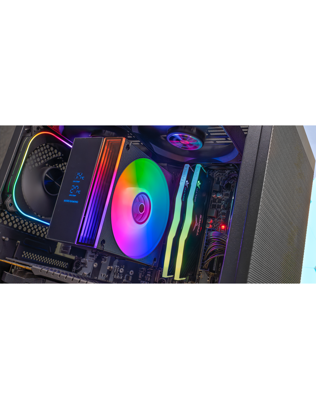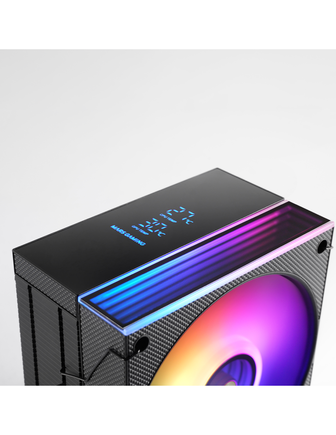 MCPU-LCD combina potenza termica estrema, monitoraggio intelligente in tempo reale e illuminazione ARGB a doppia zona con effetto Infinity Mirror in un fattore di forma compatto e facile da montare. Con 6 heatpipes HCT, ventola PWM FDB da 120 mm con nucleo in rame iperbilanciato e capacità TDP fino a 300 W, tiene sotto controllo la CPU anche in presenza di carichi elevati.