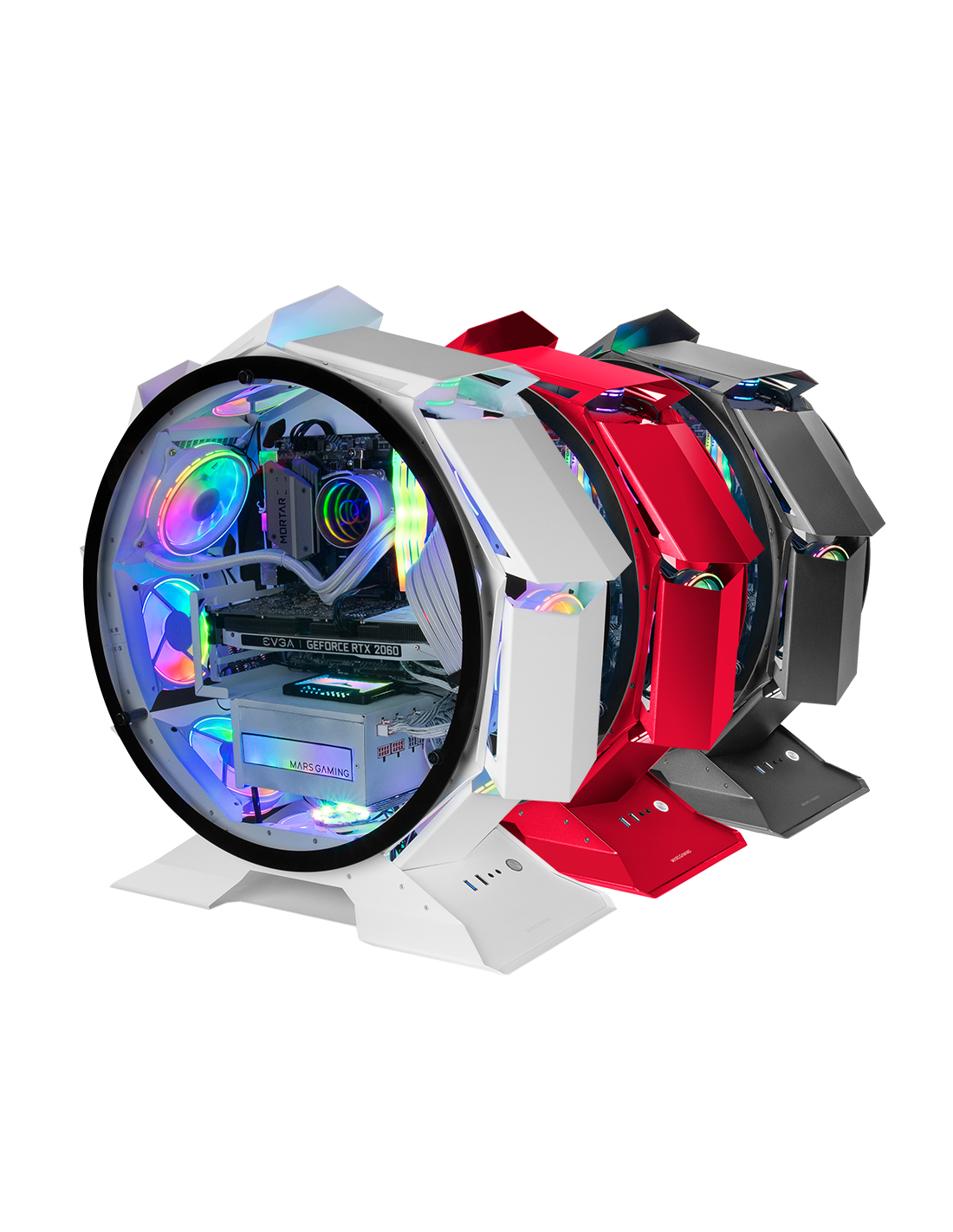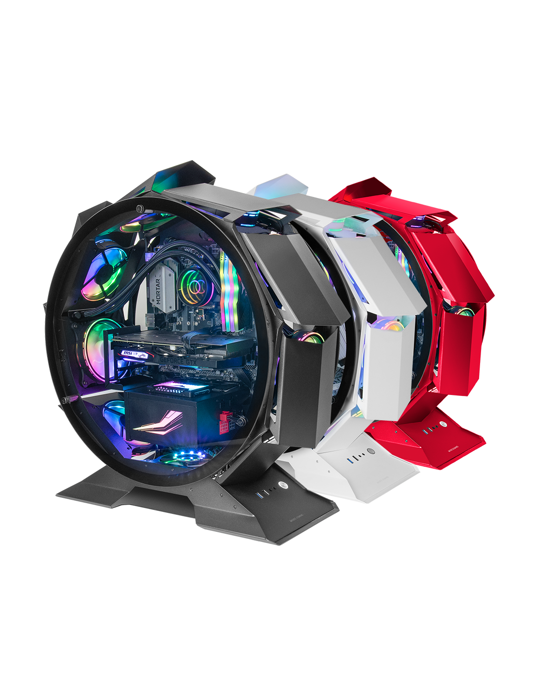 Arte e design futurista se fundem para criar uma das caixas mais espetaculares. Com um design circular, tamanho interno XL e vidro duplo temperado, a MCORB está projetada para acomodar as configurações personalizadas mais exclusivas.