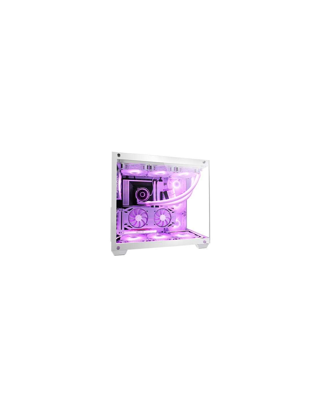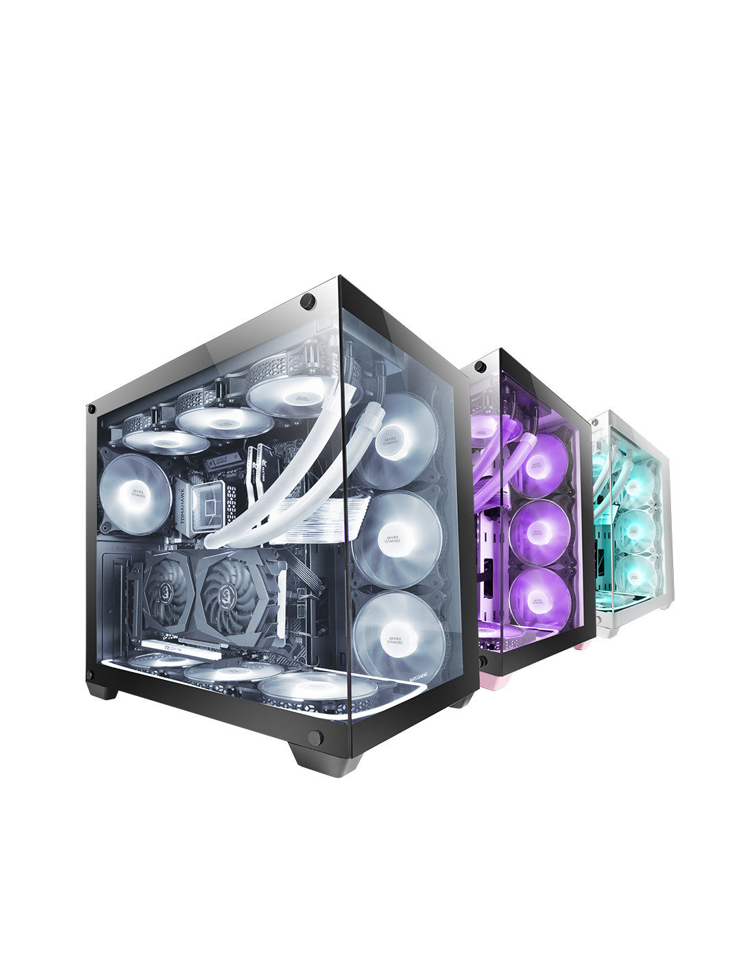 Cristal temperado contínuo sem moldura, tamanho XXL E-ATX para as configurações mais exclusivas. Com suporte para até 10 ventoinhas e refrigerações líquidas triplas em várias posições.