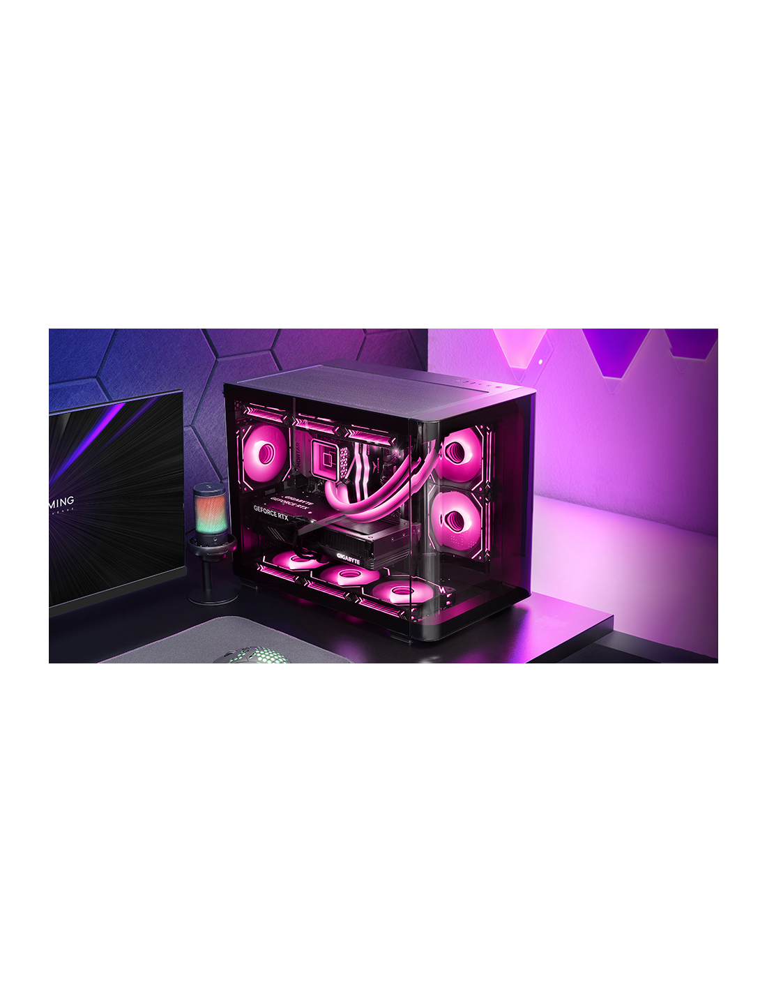 A MC-FUSIONM, com o seu exclusivo vidro curvo contínuo, combina design e funcionalidade numa caixa compacta Micro-ATX. Desenhada para setups que procuram um equilíbrio entre desempenho e espaço, oferece suporte para até 9 ventoinhas, refrigeração líquida de 360mm e um design de câmara dupla para um interior limpo e organizado. O seu foco CUSTOM permite personalizar cada detalhe para criar configurações avançadas sem limites. Estilo, tecnologia e desempenho, tudo num formato mais compacto.