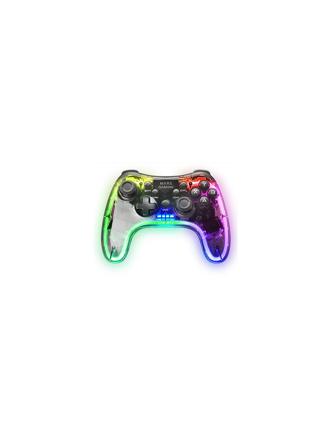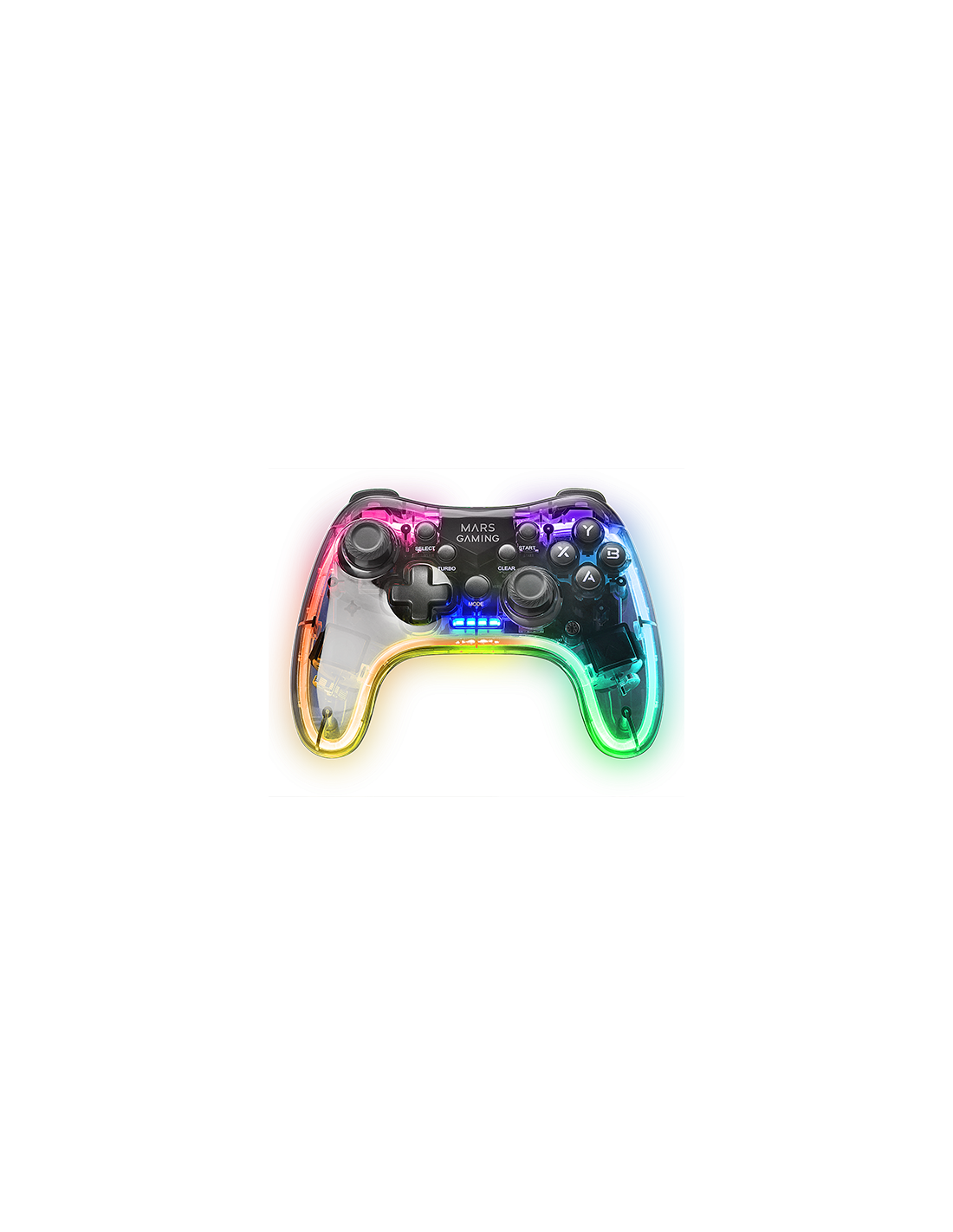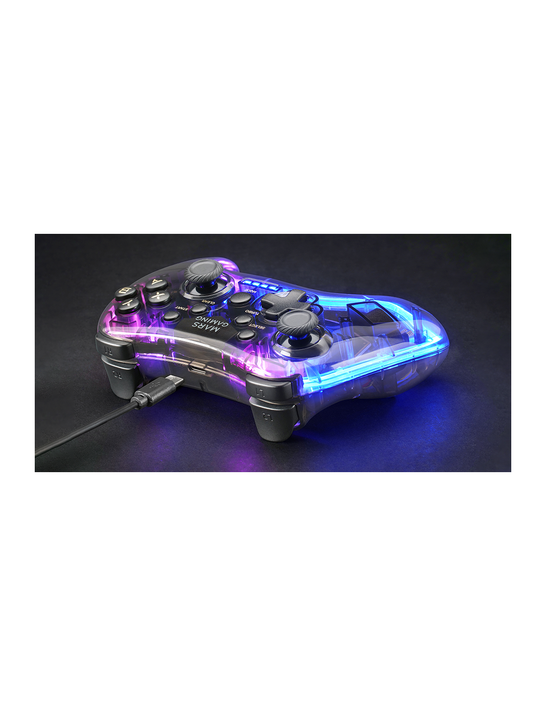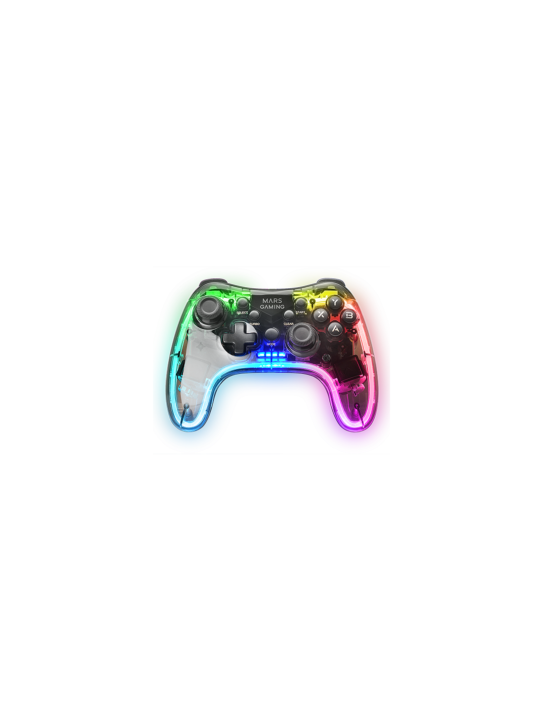 Gamepad com conexão sem fio profissional 2.4GPRO, sem lag e com máxima estabilidade de conexão. Design espetacular translúcido preto com iluminação NEON RGB. Sistema de vibração háptica dupla e compatibilidade superior multiplataforma.