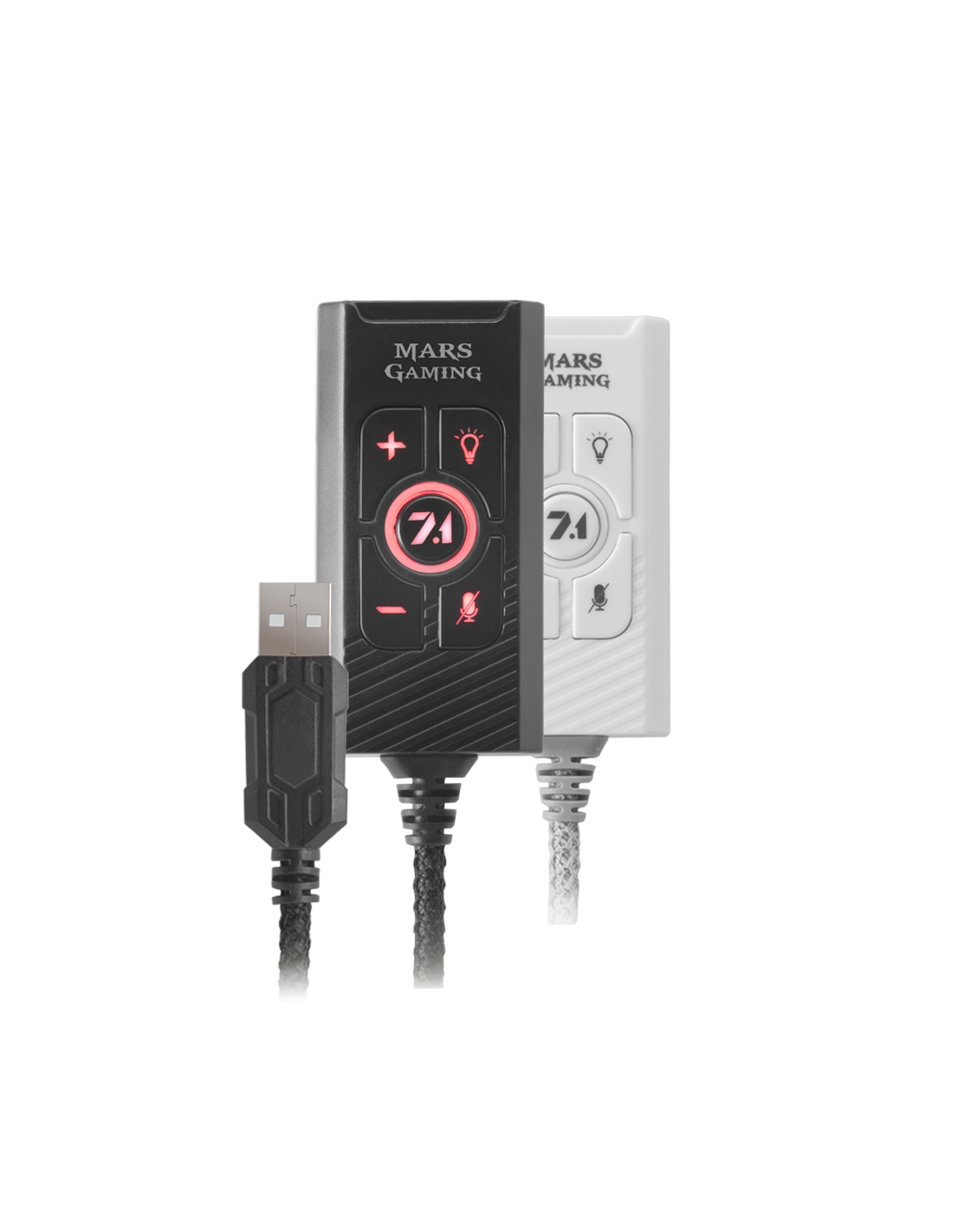 Mars Gaming MSC2 é o cartão de som surround USB 7.1 perfeito para levar o som dos seus fones de ouvido para o próximo nível. Compatibilidade universal multiplataforma, software de personalização total, controle multifuncional e uma porta USB de energia embutida para alimentar o sistema de iluminação dos seus fones de ouvido ou para carregar dispositivos USB. O cartão de som 7.1 mais completo e avançado.