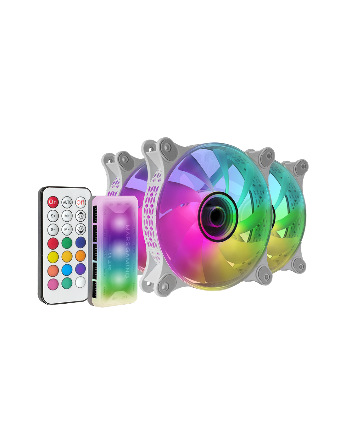 Kit de 3 ventiladores ARGB MF-3D com espelho infinito, o controlador ARGB mais avançado iluminado com controle remoto RF, suporte para até 10 ventiladores ARGB, compatibilidade com placas-mãe ARGB e controle total da iluminação com até 220 efeitos.