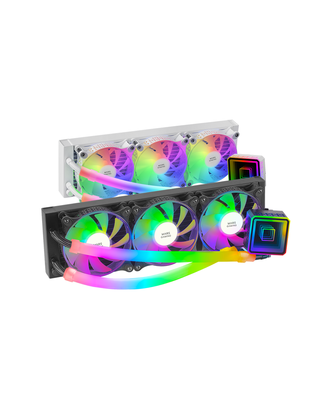 A refrigeração líquida mais espetacular e poderosa. Espelho infinito, tubos e ventiladores ARGB 360º e um desempenho excepcional em sistemas de refrigeração líquida com uma potência extraordinária de até 650W. Nova bomba OPTI-CHAMBER de terceira geração, 3x ventiladores silenciosos FDB ARGB, radiador de baixa resistência e compatibilidade universal.